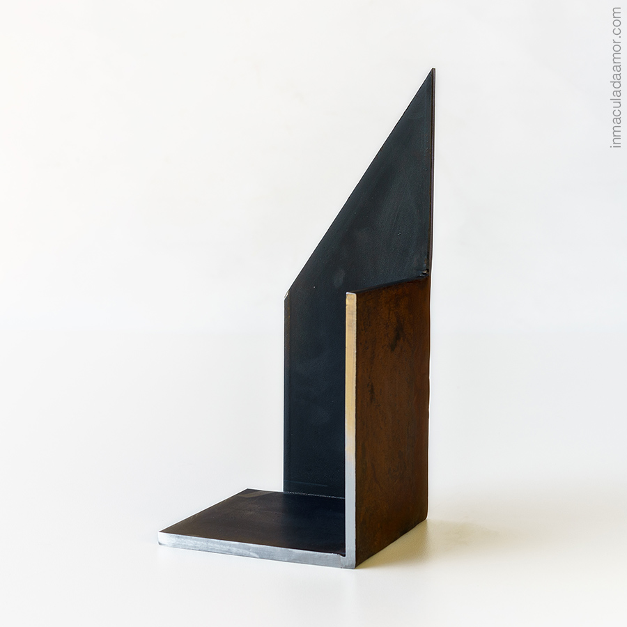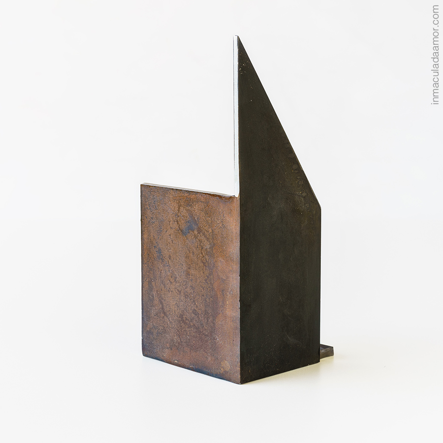 acabado en hierro pátina oxidada a la cera, pintura negra y zonas lijadas.